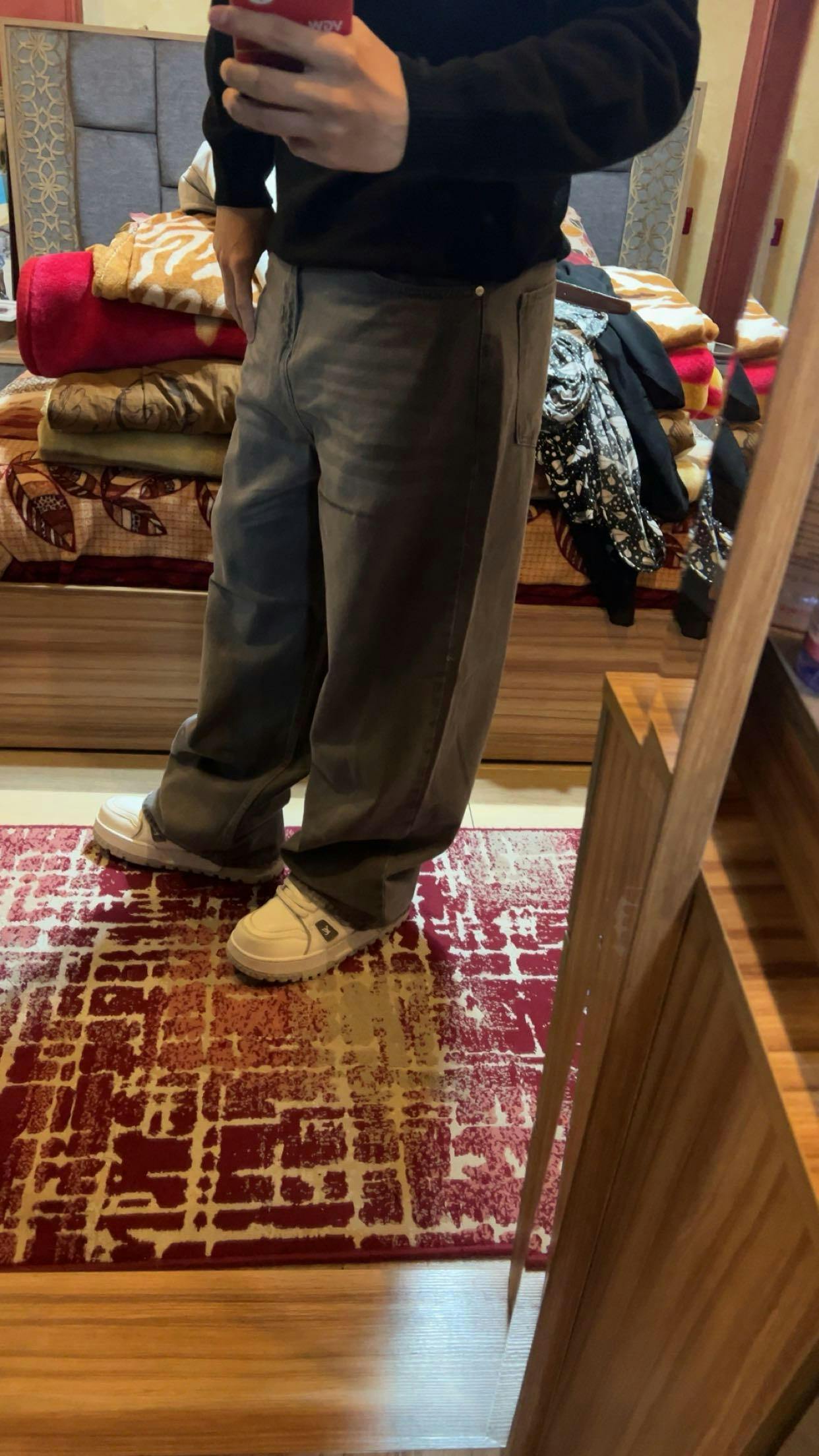 Balance the oversized silhouette with a clean basic tee or fitted knit and chunky sneakers for everyday street style. For a sharper look, pair with a structured jacket and minimal sneakers or leather loafers.